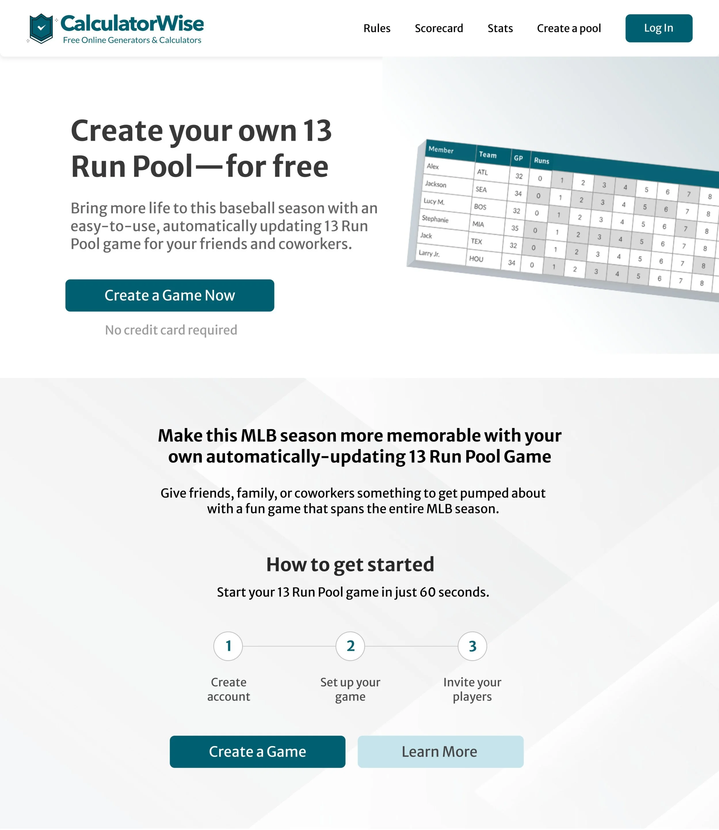 13 Run Pool: An engaging online game for Major League Baseball fans.