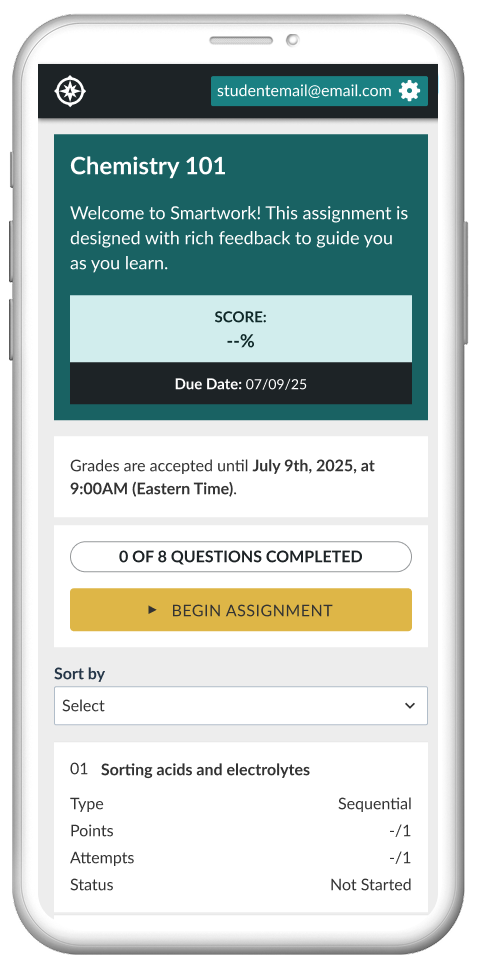 Sequential Questions is a question type developed for Smartwork, W.W. Norton’s online learning assessment tool used by over one million college students and instructors.
