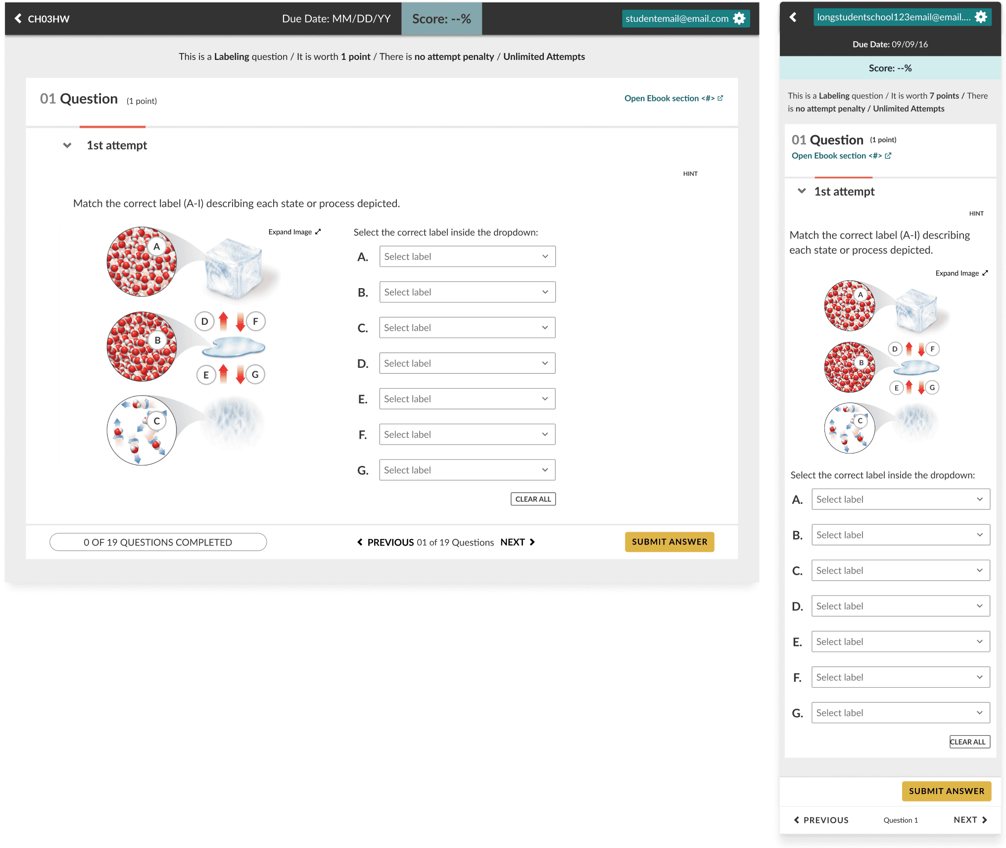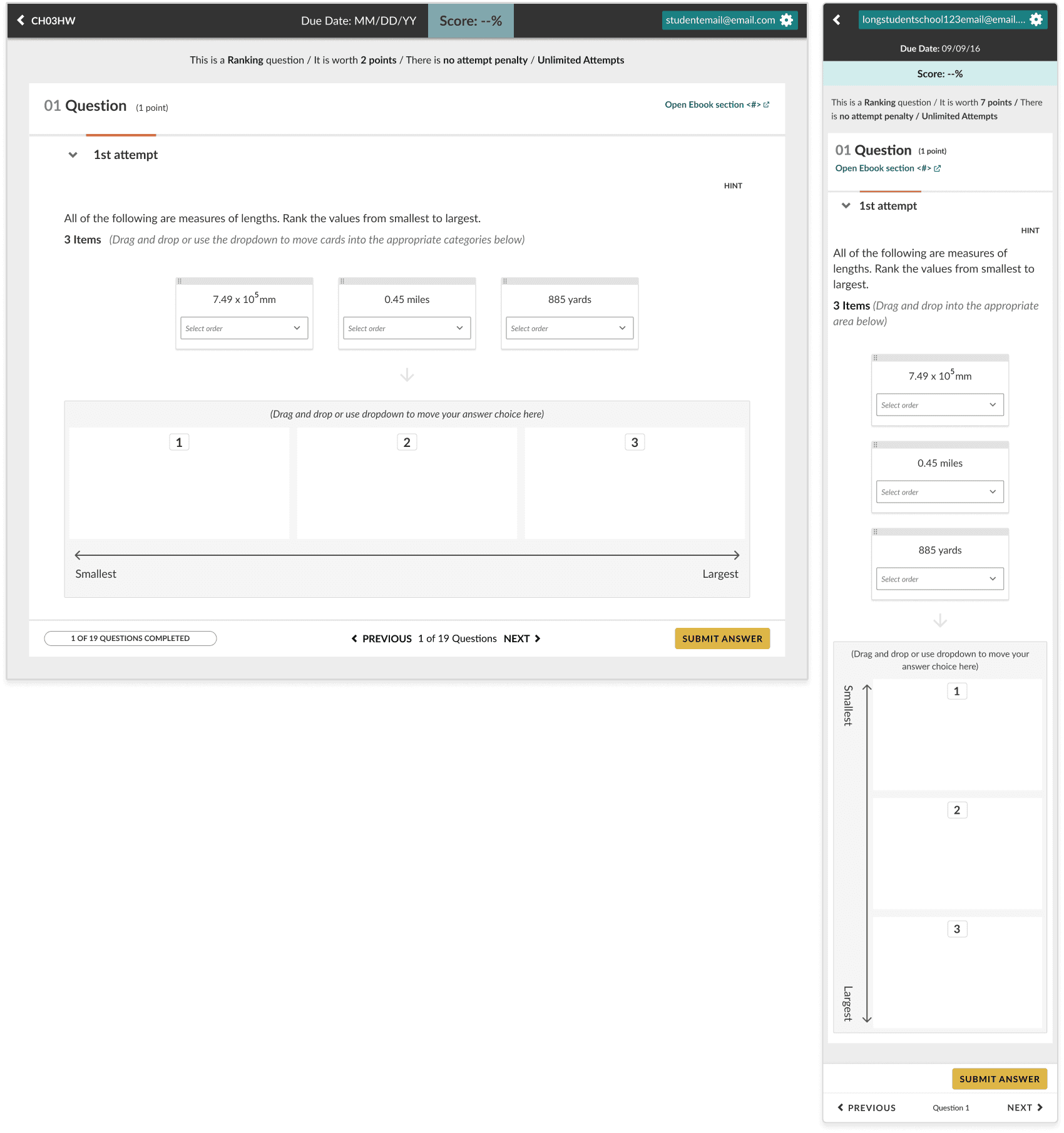 Most components in the original design were not built for smaller screens, either breaking entirely, or becoming too small to use on tablet or mobile. This created many issues for users and blocked them from completing their assignment.