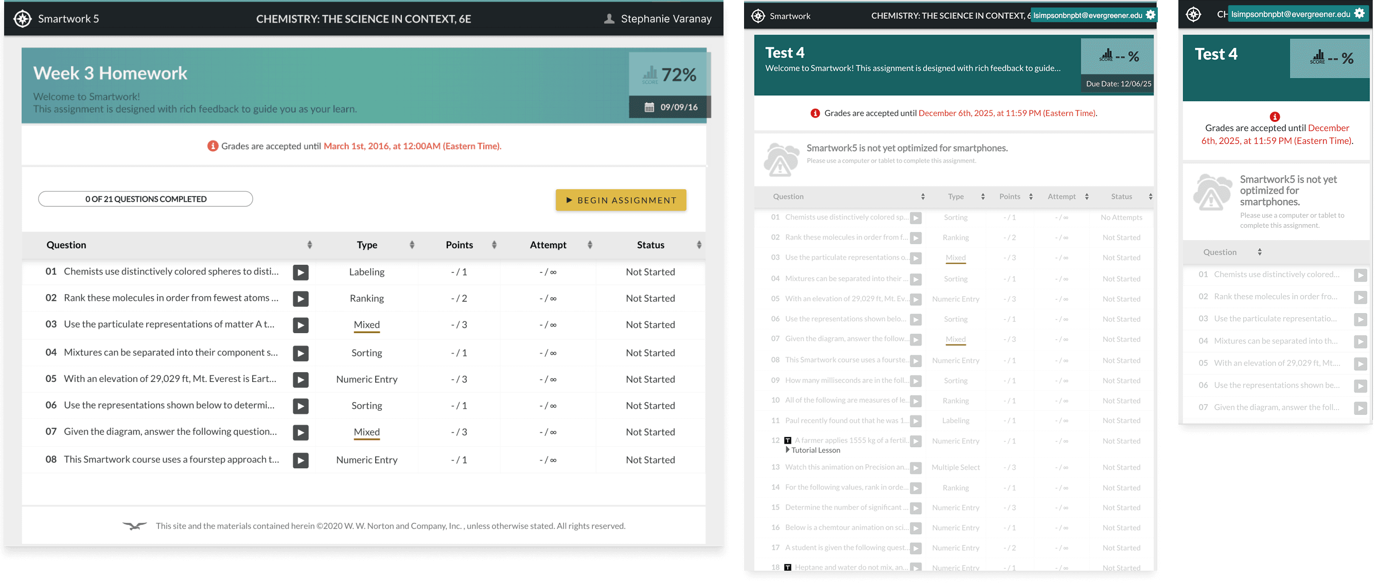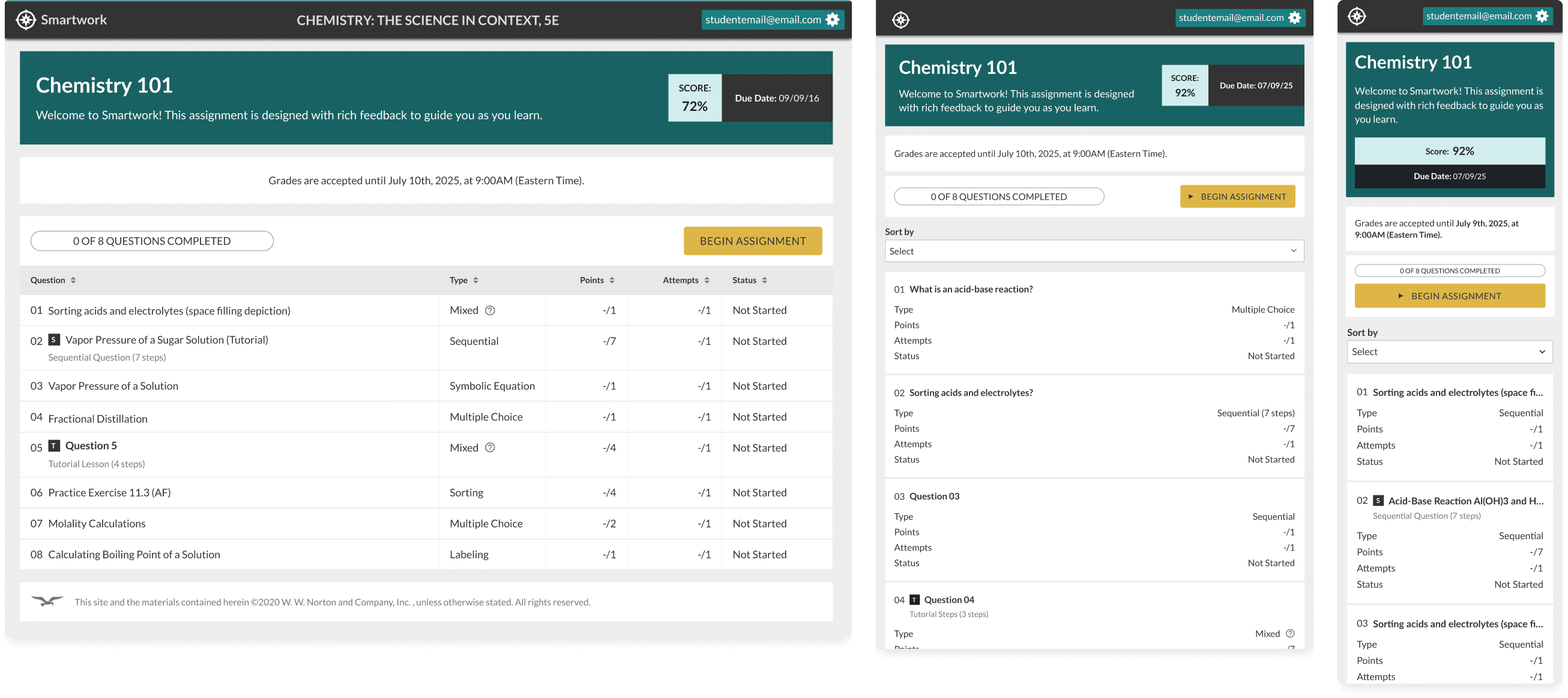 W.W. Norton's legacy product was not accessible or mobile-friendly, blocking a significant portion of students and failing to meet institutional requirements. The platform needed a full responsive and accessible overhaul — without disrupting the familiar workflows of over one million existing users, and within the tight limitations of a legacy system.